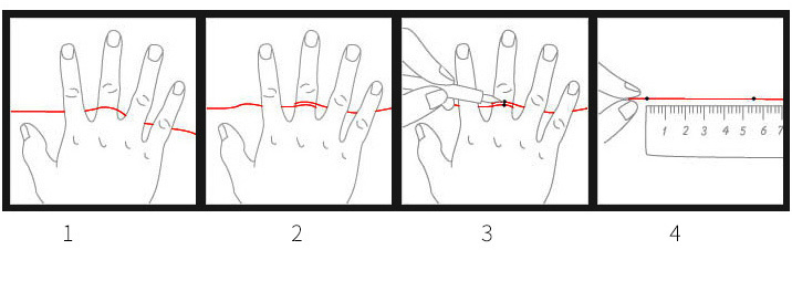 The most important factor when purchasing any ring, is making sure it fits BEIER JEWELRY provides you with the most comprehensive way, (maybe the only way) to measure your finger. 1. Wrap a piece of string or paper string around the base of your finger. 2. Mark the string or paper where it overlaps to form a complete circle. 3. Measure the length of the section of string or paper where it overlaps around the finger.