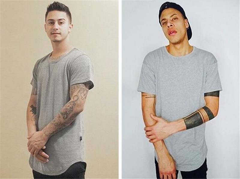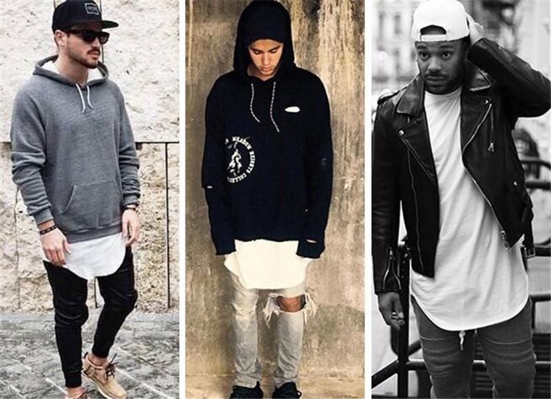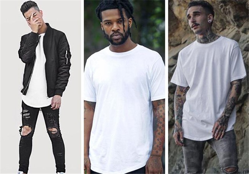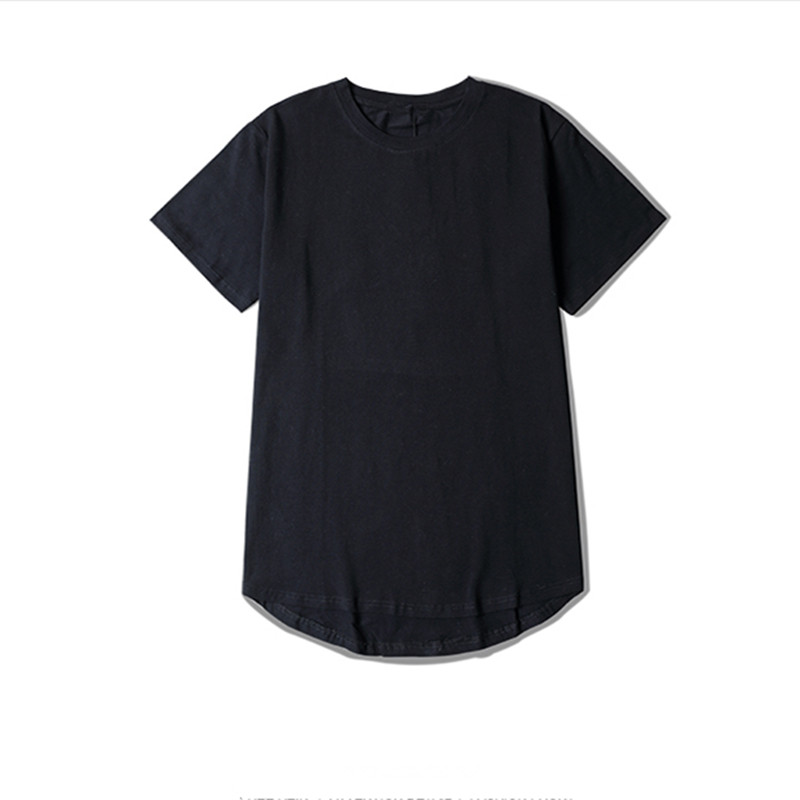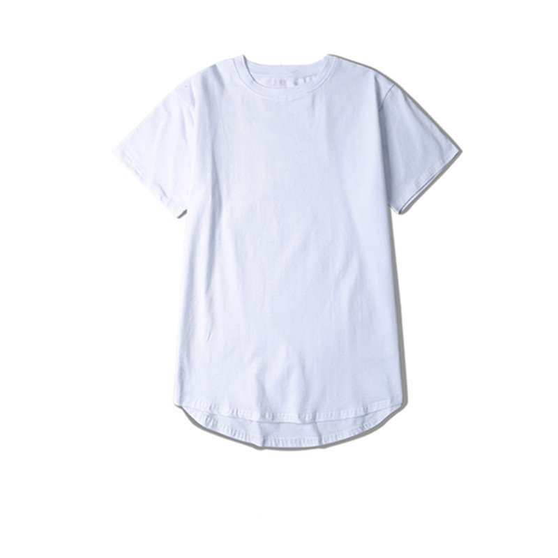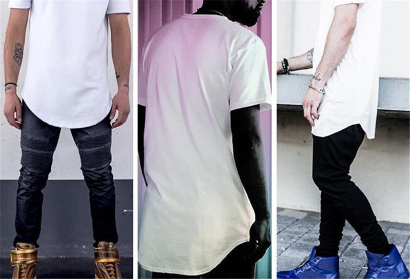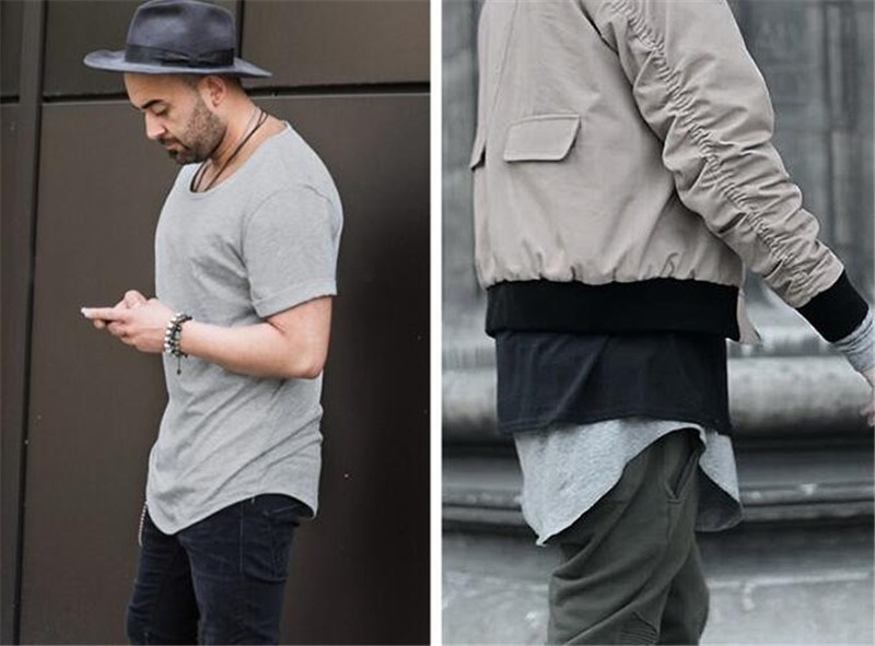 Urban Fashion Kanye West Curved Hem HipHop T-shirt Men Urban Kpop Extended T shirt Plain Long line