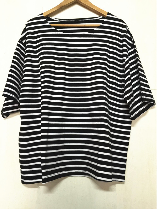 Freestyle Fashion Oversize Brand Chris Brown Kanye West Justin Bieber Fear of God Striped half Street T-shirt.