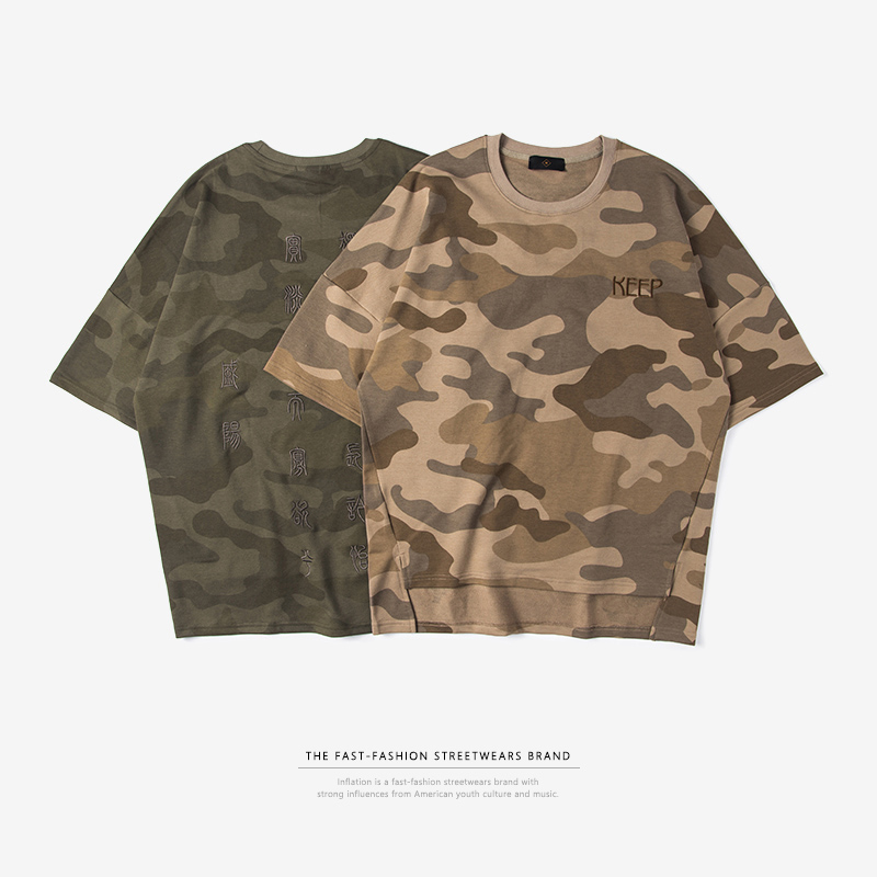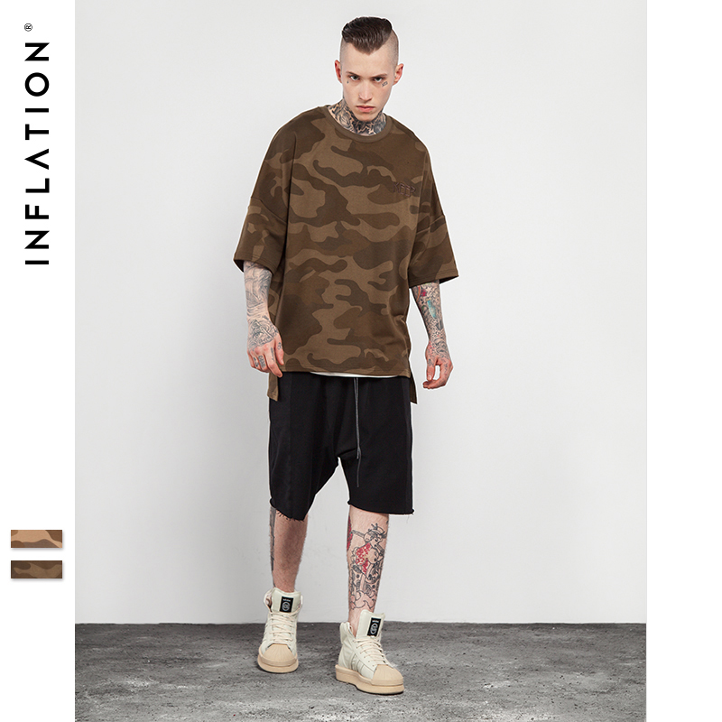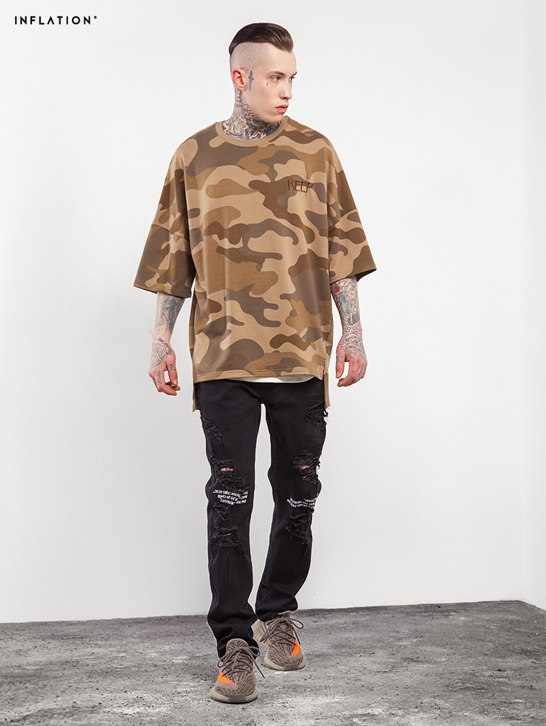 Super Punk Swag Oversizd Camo Loose Hip Hop Street-wear T Shirts Crew Neck Cotton T-Shirts