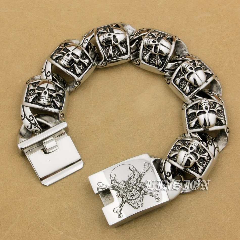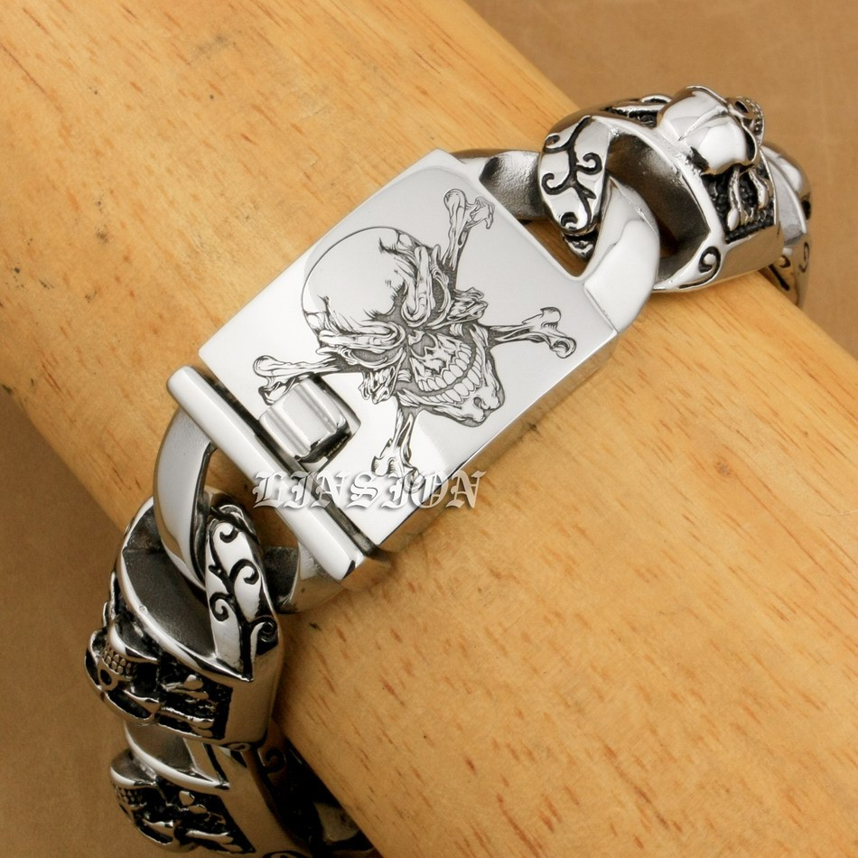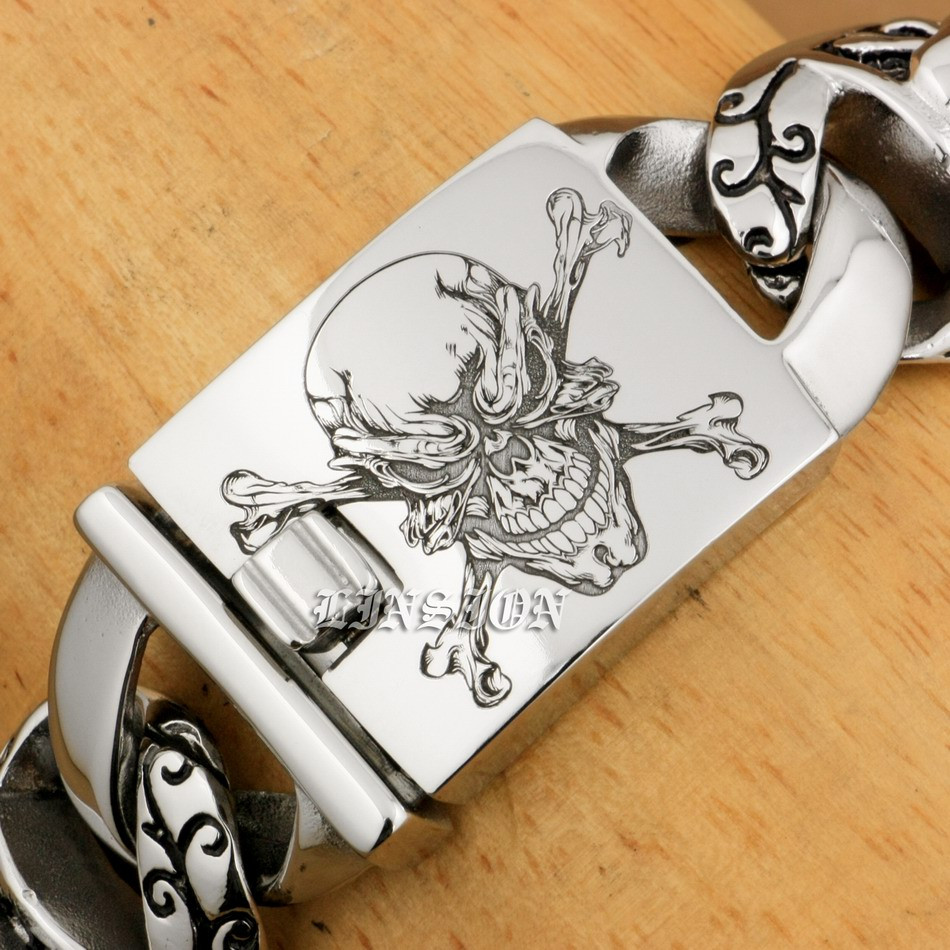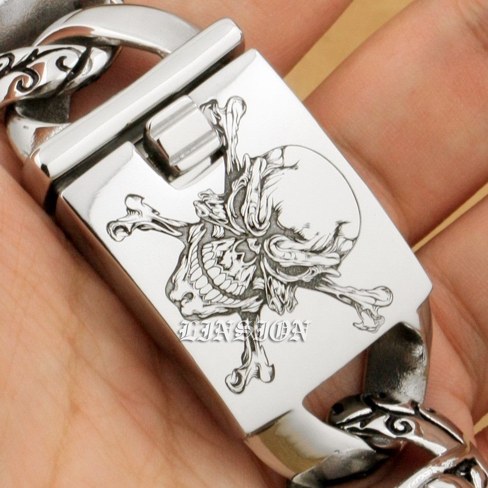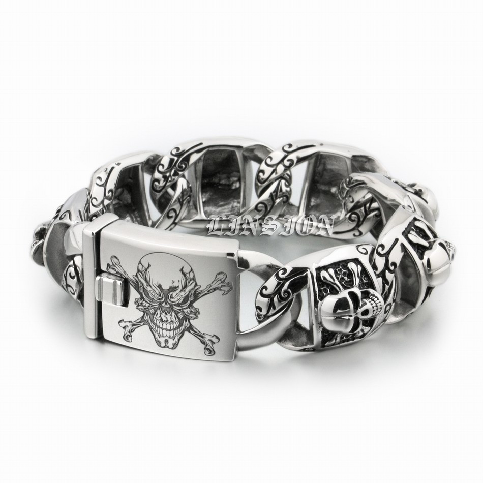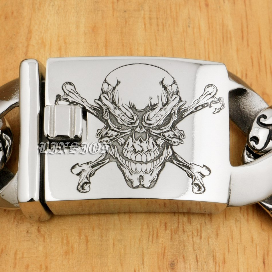 Retro Punk Huge Heavy 316L Stainless Steel Deep Laser Engraved Pirate Skull Mens Boys Biker Rock Punk Bracelet 5T102
