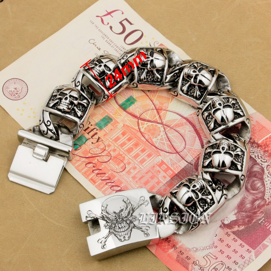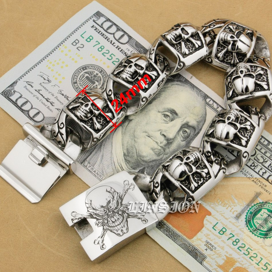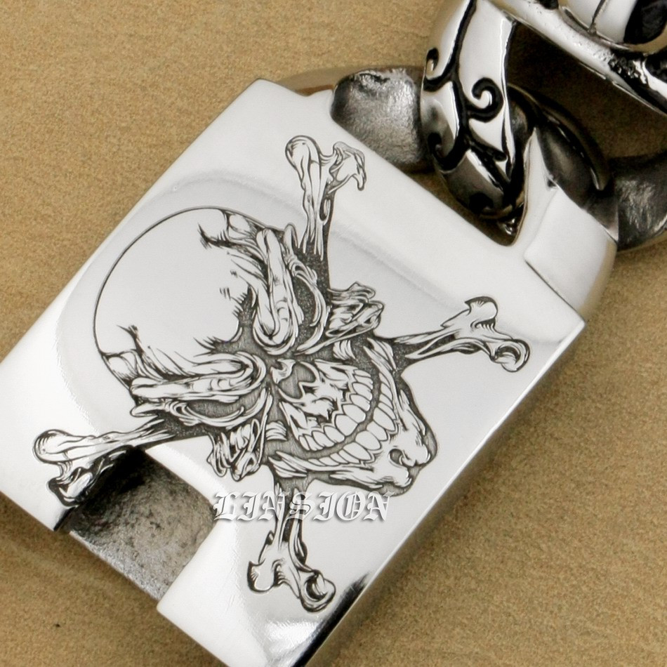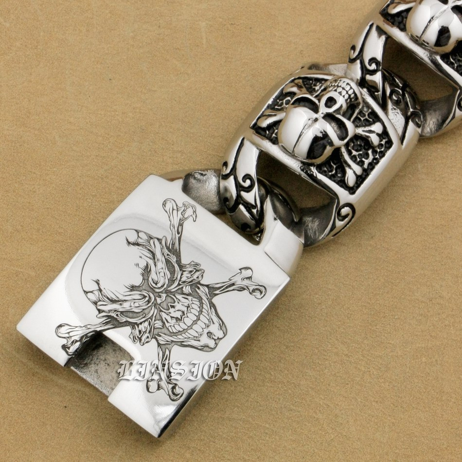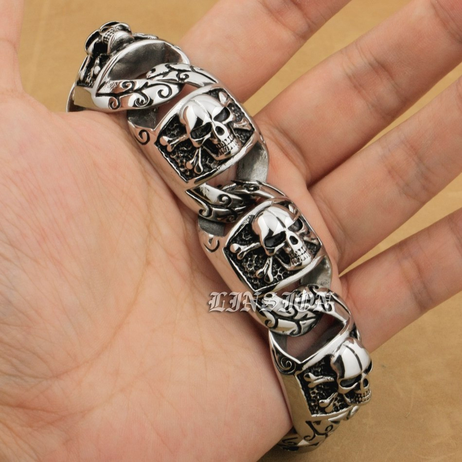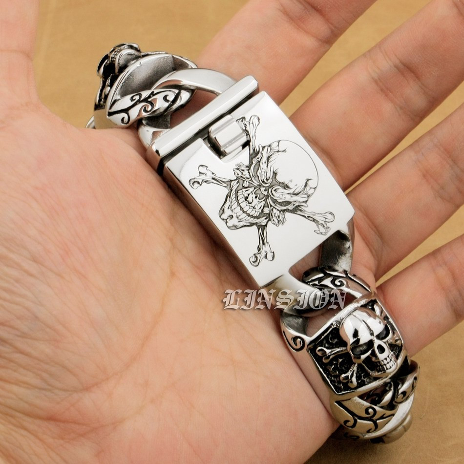 Retro Punk Huge Heavy 316L Stainless Steel Deep Laser Engraved Pirate Skull Mens Boys Biker Rock Punk Bracelet 5T102