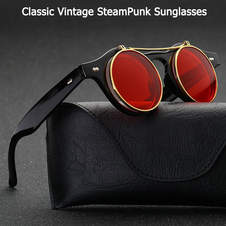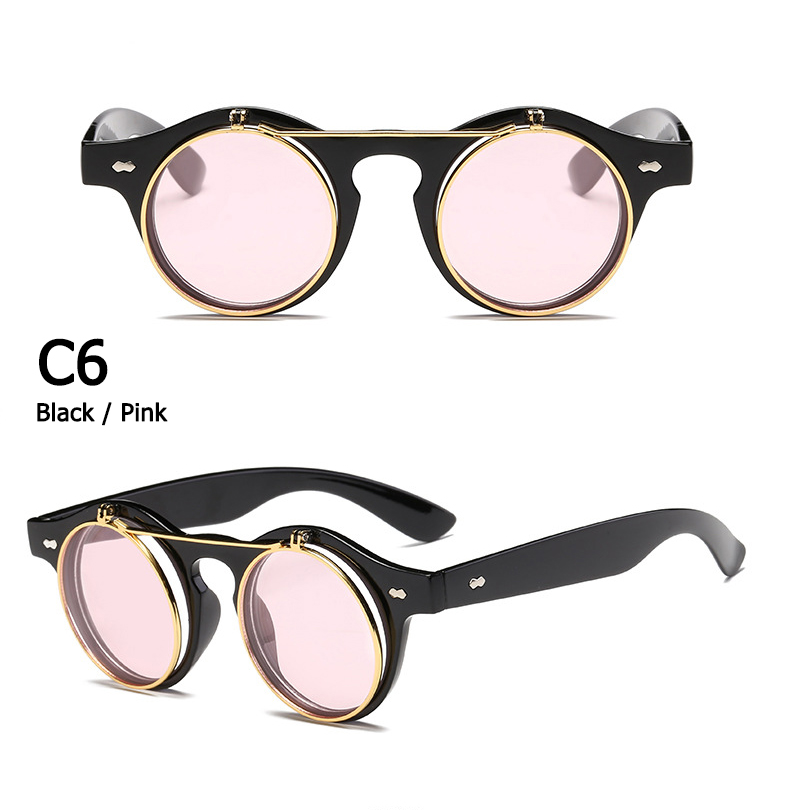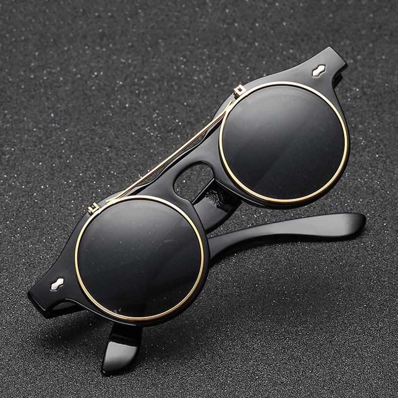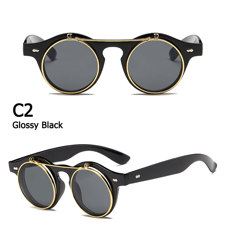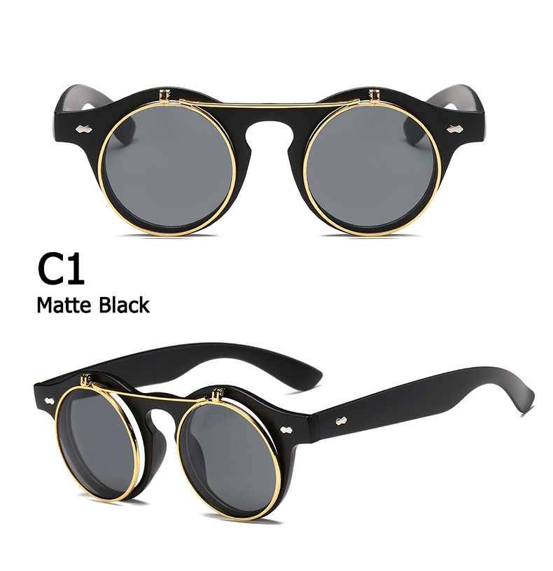 Stylish Steam Punk Vintage Round Retro Sunglasses Classic Double Layer Clam shell Design Sun Glasses