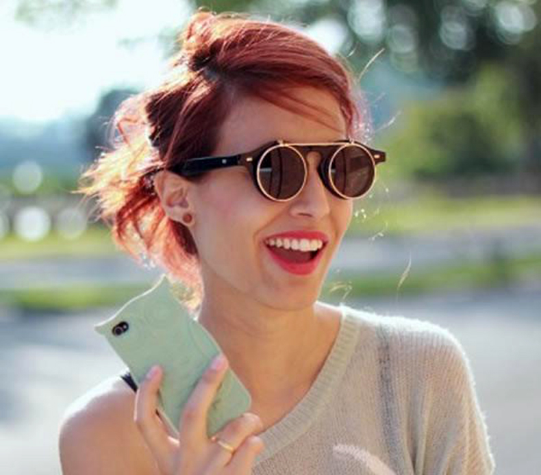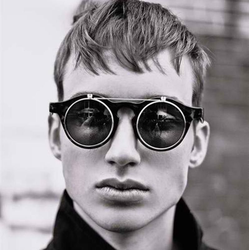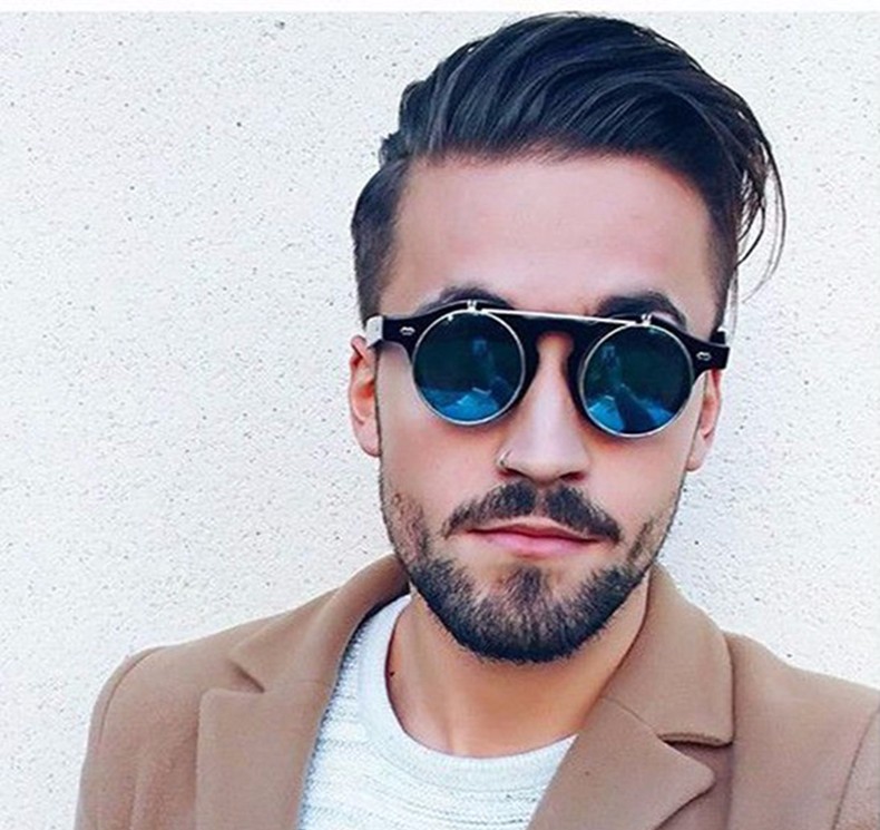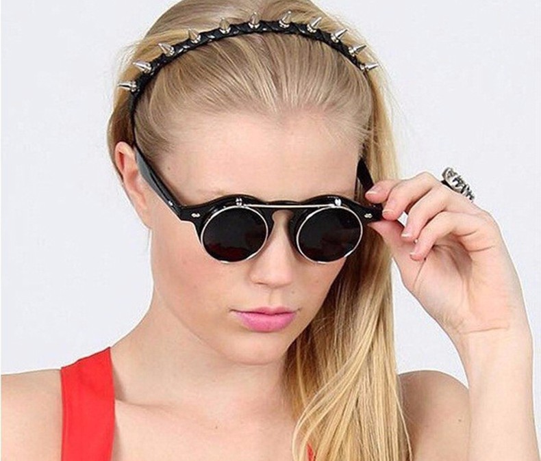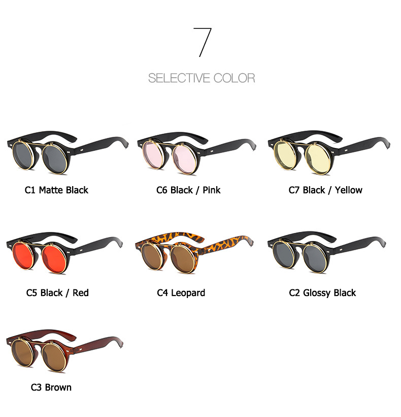 Stylish Steam Punk Vintage Round Retro Sunglasses Classic Double Layer Clam shell Design Sun Glasses